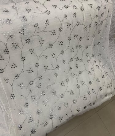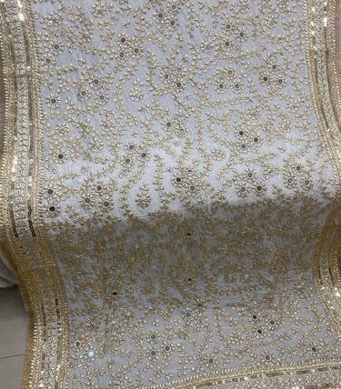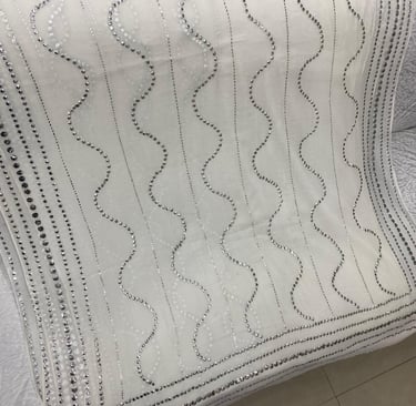New arrival mukesh work saree fabric pure chiffon dye able in all shades