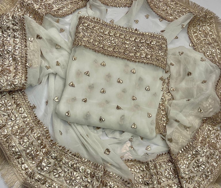 New arrivals Mukesh work shirt and dupta fabric pure China crinkle chiffon dye able in all shades